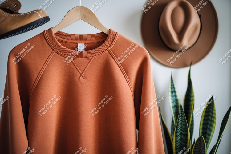 Fashion Clothing Casual Mockup Apparel Branch Orange Comfortable Hanging Sweatshirt