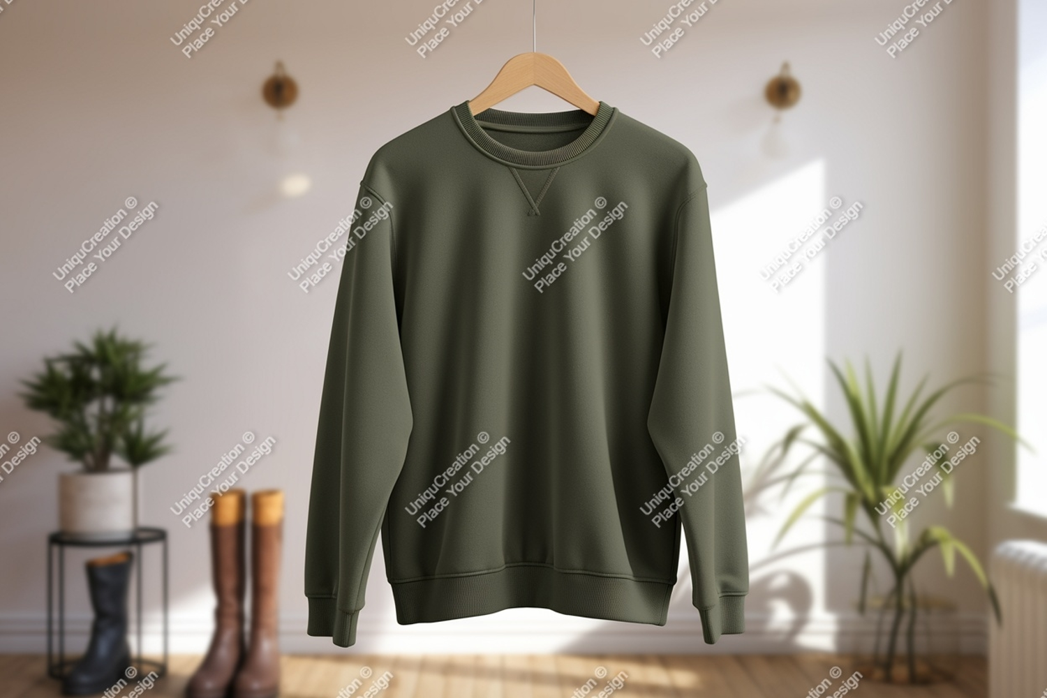 Similar Design Products to Olive green crewneck sweatshirt mockup