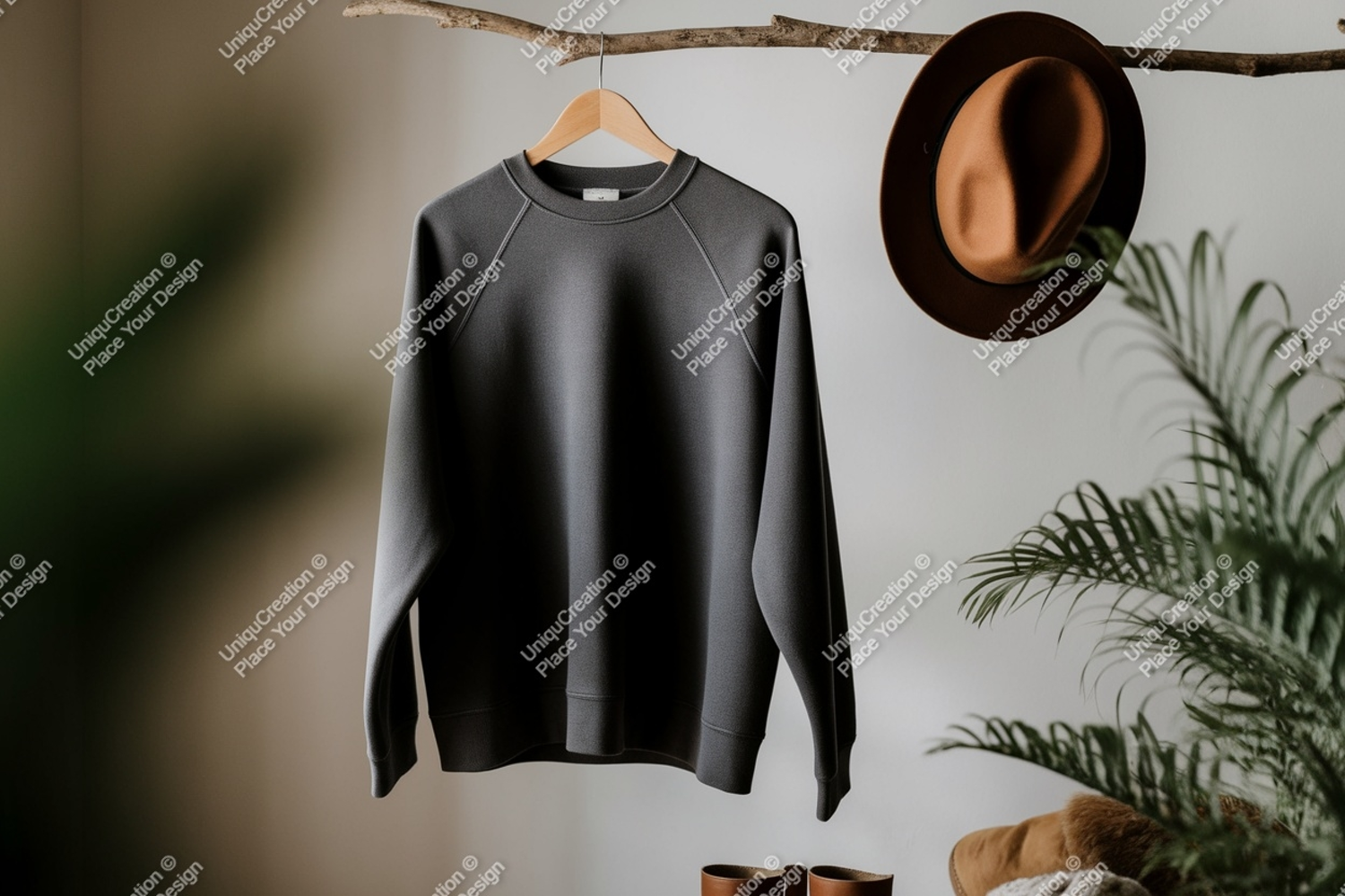 Gray Crewneck Sweatshirt Hanging Mockup example image 1