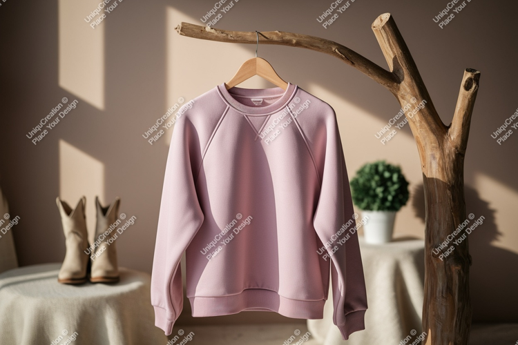 Fashion Pink Clothing Casual Mockup Garment Sweatshirt Raglan Sleeves Crewneck