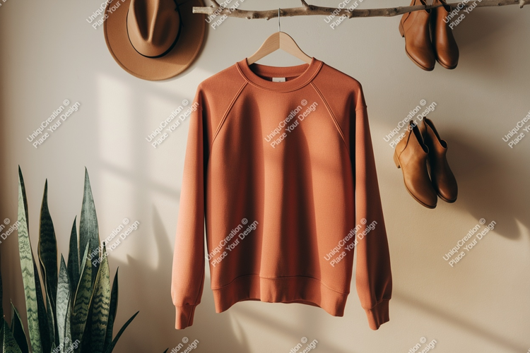 Fashion Casual Mockup Plant Hat Neutral Hanging Boots Sweatshirt Terracotta