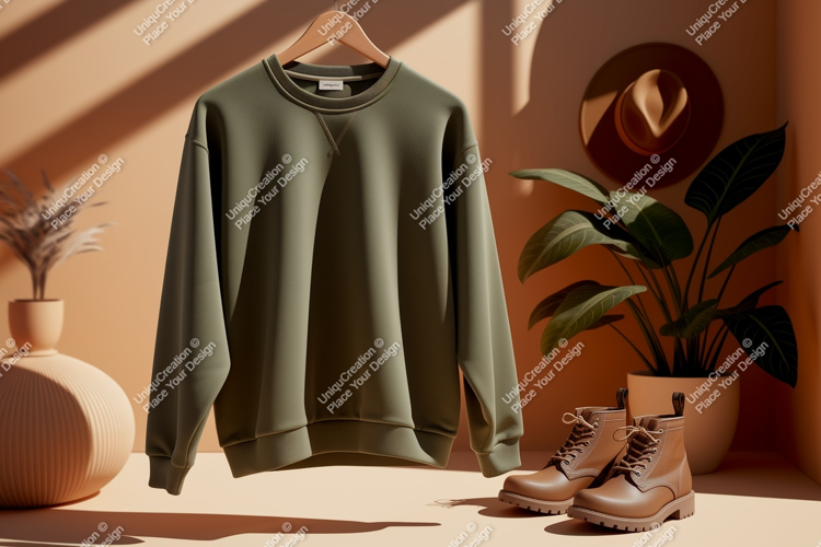 Similar Design Products to Olive green crewneck sweatshirt with boots image