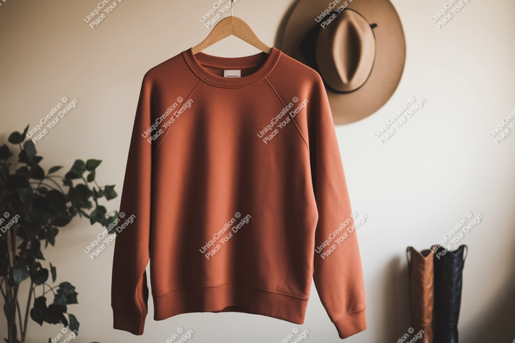 Fashion Clothing Casual Mockup Apparel Indoor Hanging Sweatshirt Raglan Terracotta