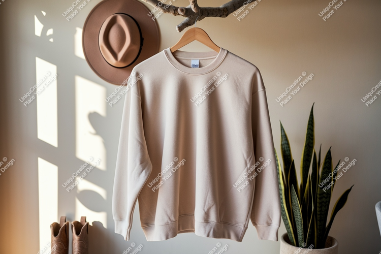 Fashion Clothing Mockup Apparel Beige Textile Hanging Garment Sweatshirt Crewneck