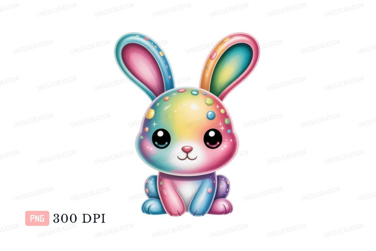 Kawaii rainbow bunny with colorful dots rabbit cute example image 1