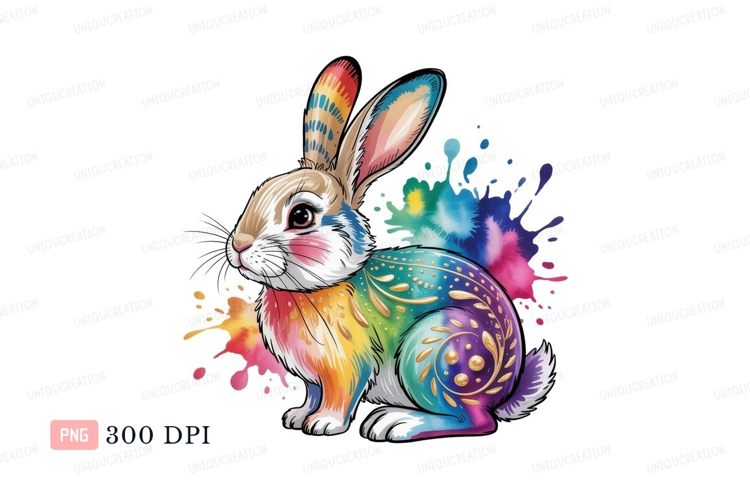 Colorful rabbit with ornate patterns bunny rainbow example image 1
