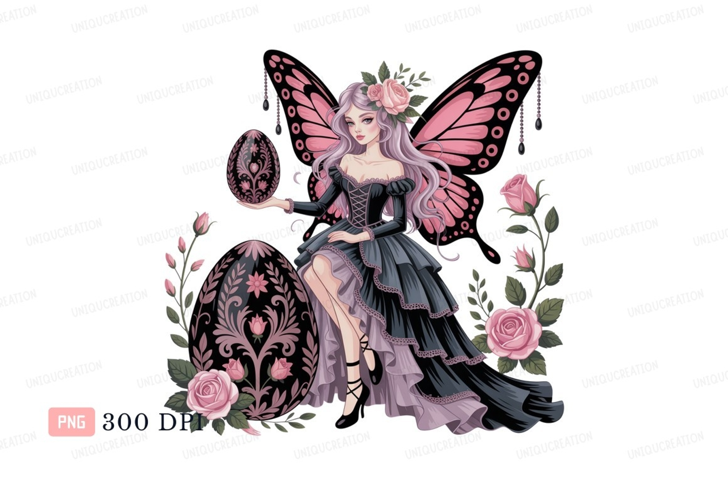 Fairy holding ornate egg with roses butterfly wings example image 1