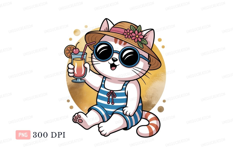 Cat wearing hat and sunglasses holding drink feline example image 1