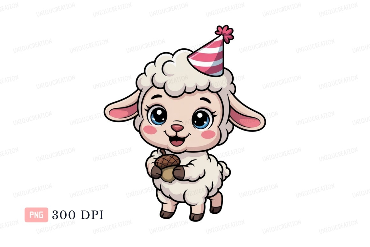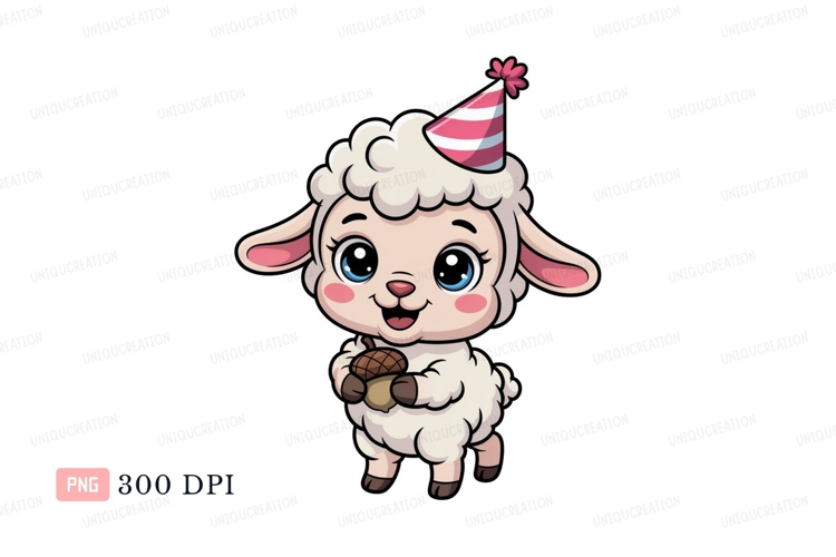 Cute sheep wearing party hat holding acorn lamb animal example image 1