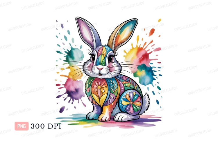 Colorful rabbit with paint splatters bunny example image 1