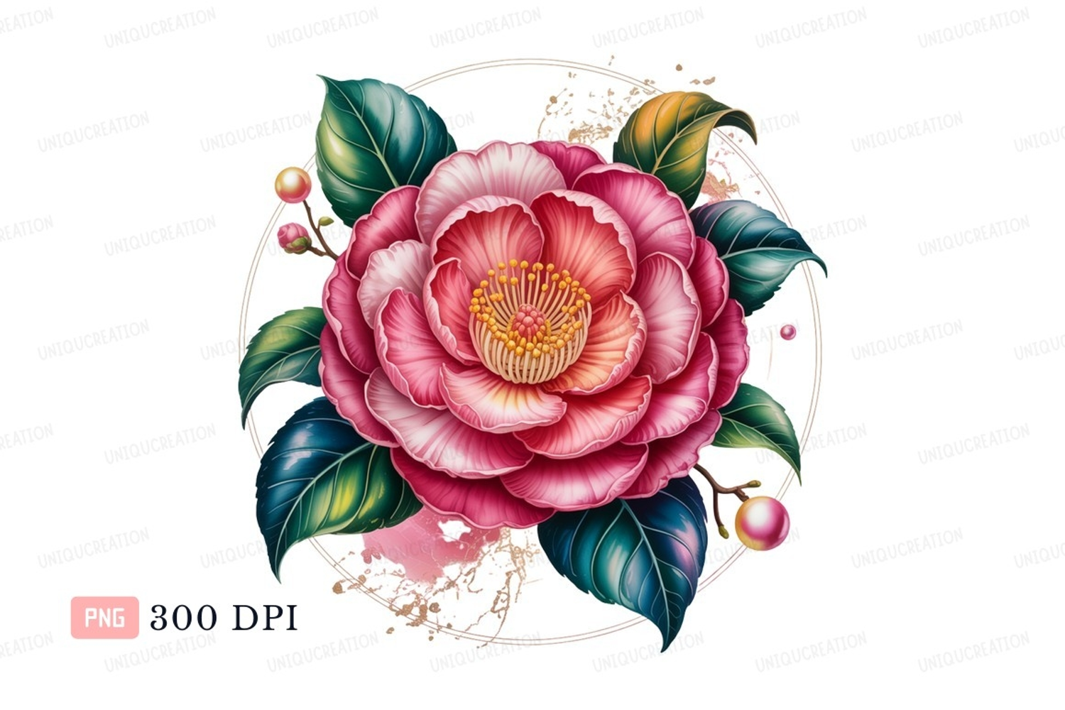 Similar Design Products to Pink camellia bloom with green leaves flower