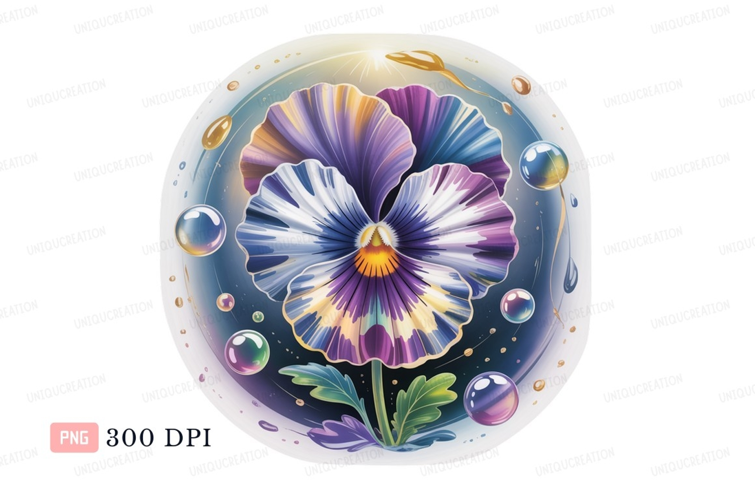Similar Design Products to Vibrant pansy flower with floating bubbles purple white