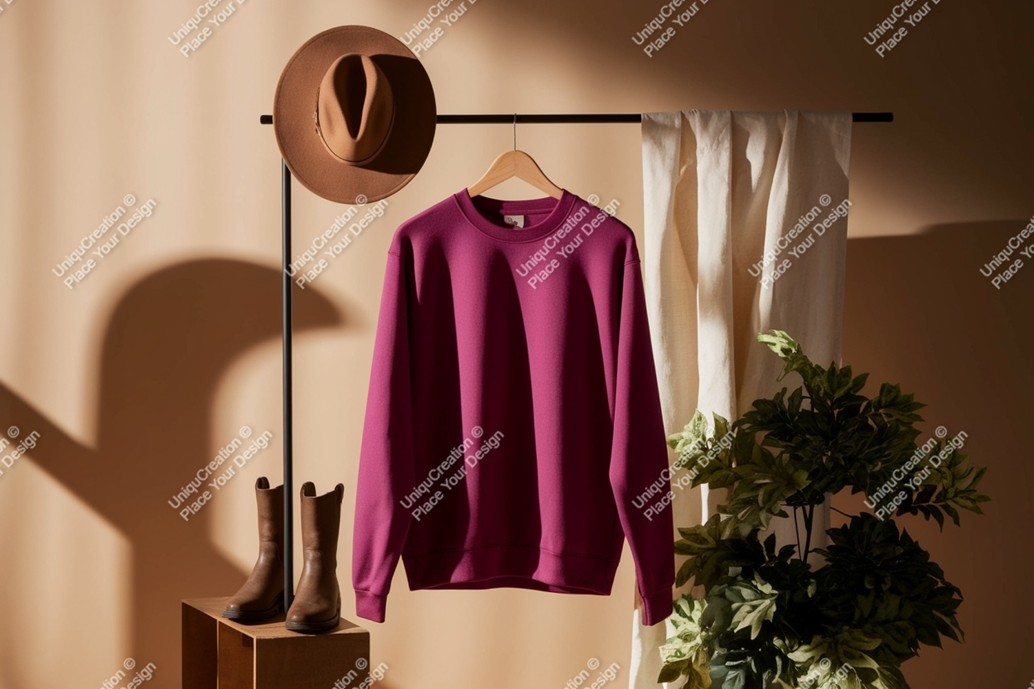 Magenta sweatshirt hat boots plant mockup image example image 1