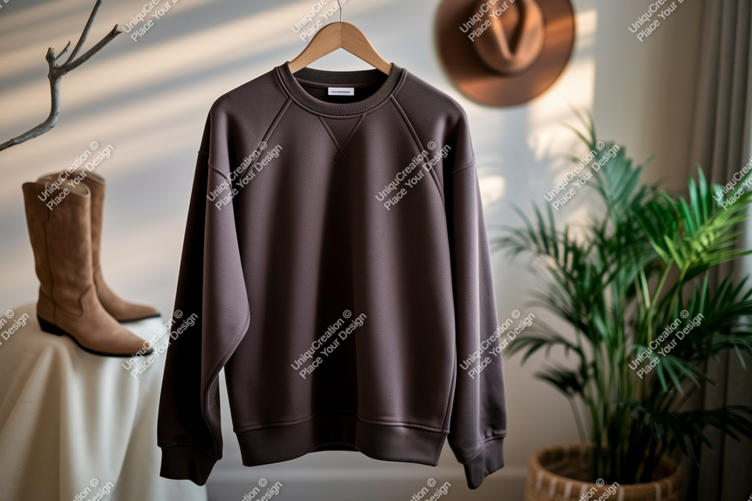 Fashion Clothing Mockup Apparel Brown Plant Hat Hanging Boots Sweatshirt