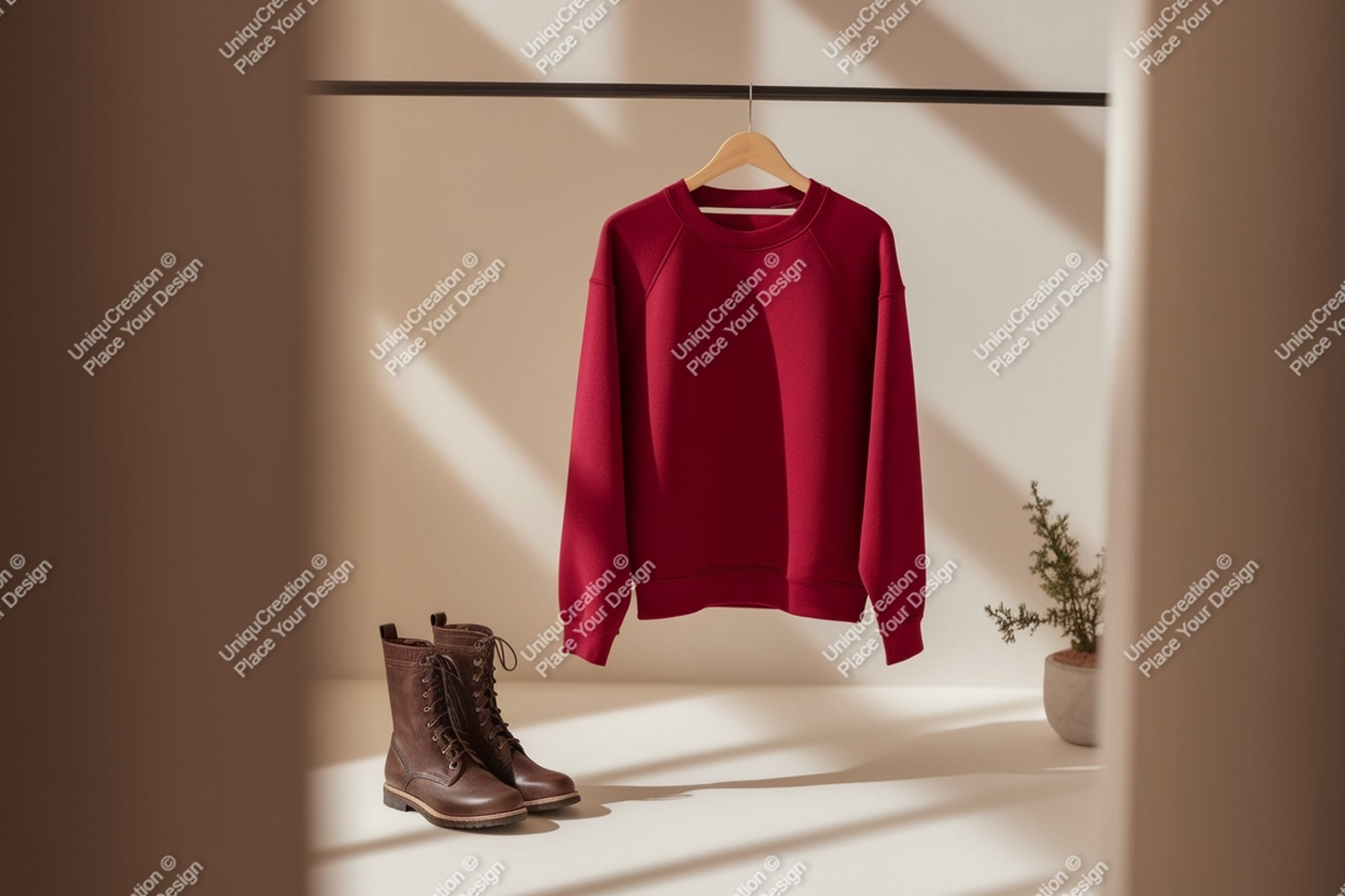 Similar Design Products to Crimson sweatshirt brown boots plant image