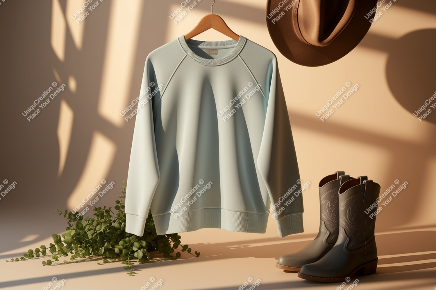 Similar Design Products to Light blue sweatshirt hat boots plant brown