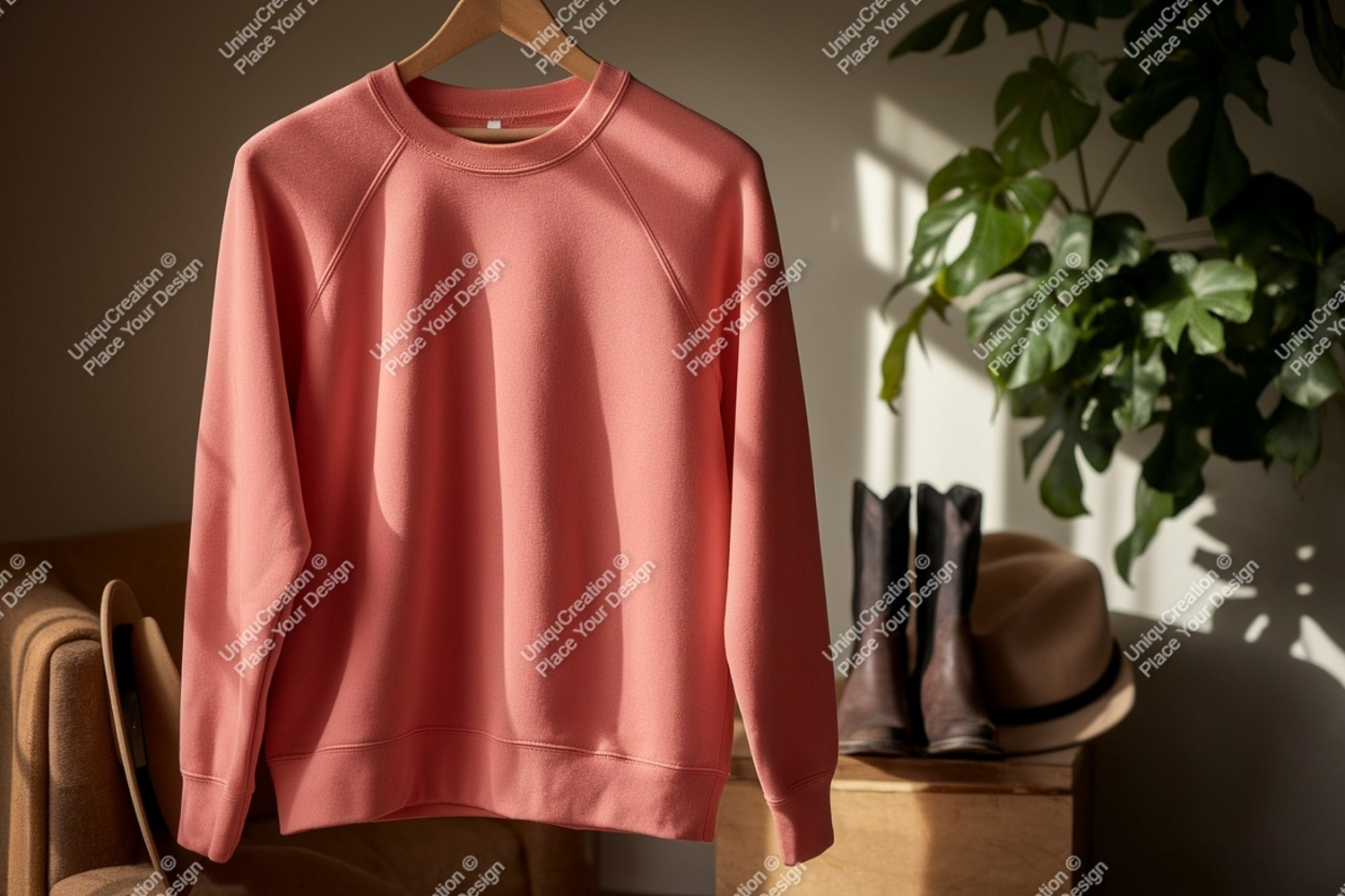 Similar Design Products to Coral sweatshirt hanging indoors raglan crewneck