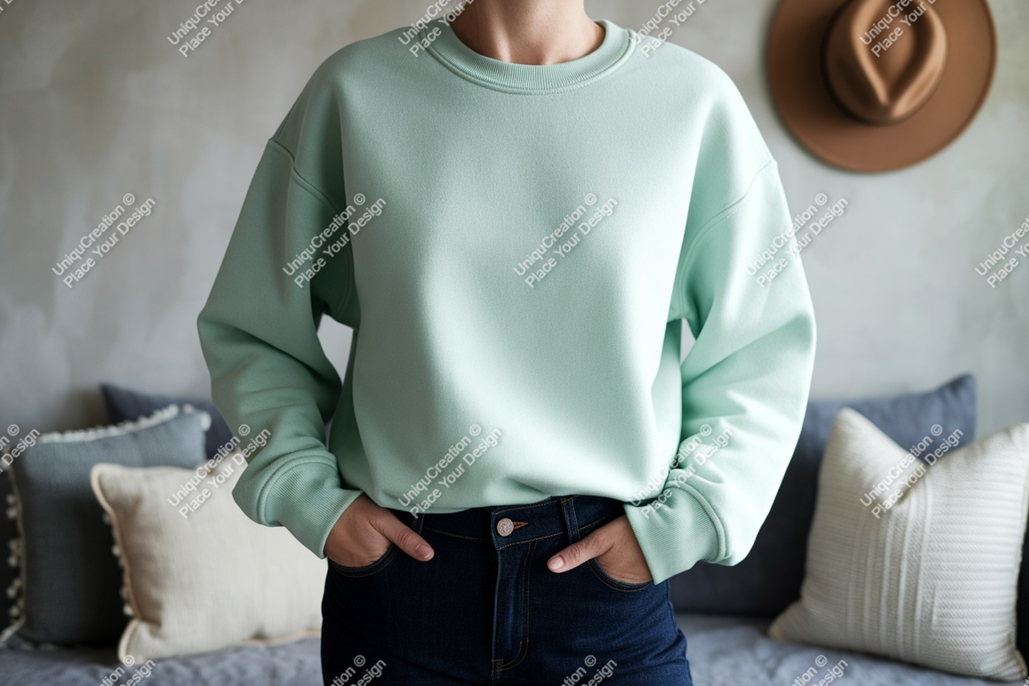 Similar Design Products to Mint green crewneck sweatshirt mockup