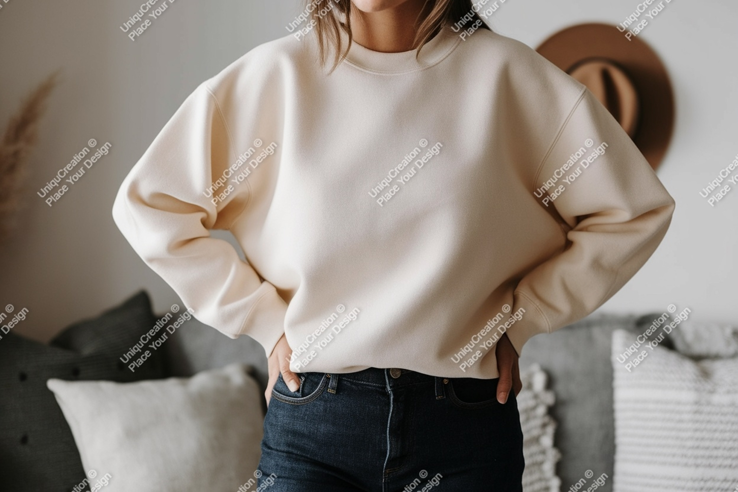 Similar Design Products to Creamy sweatshirt casual denim Mockup