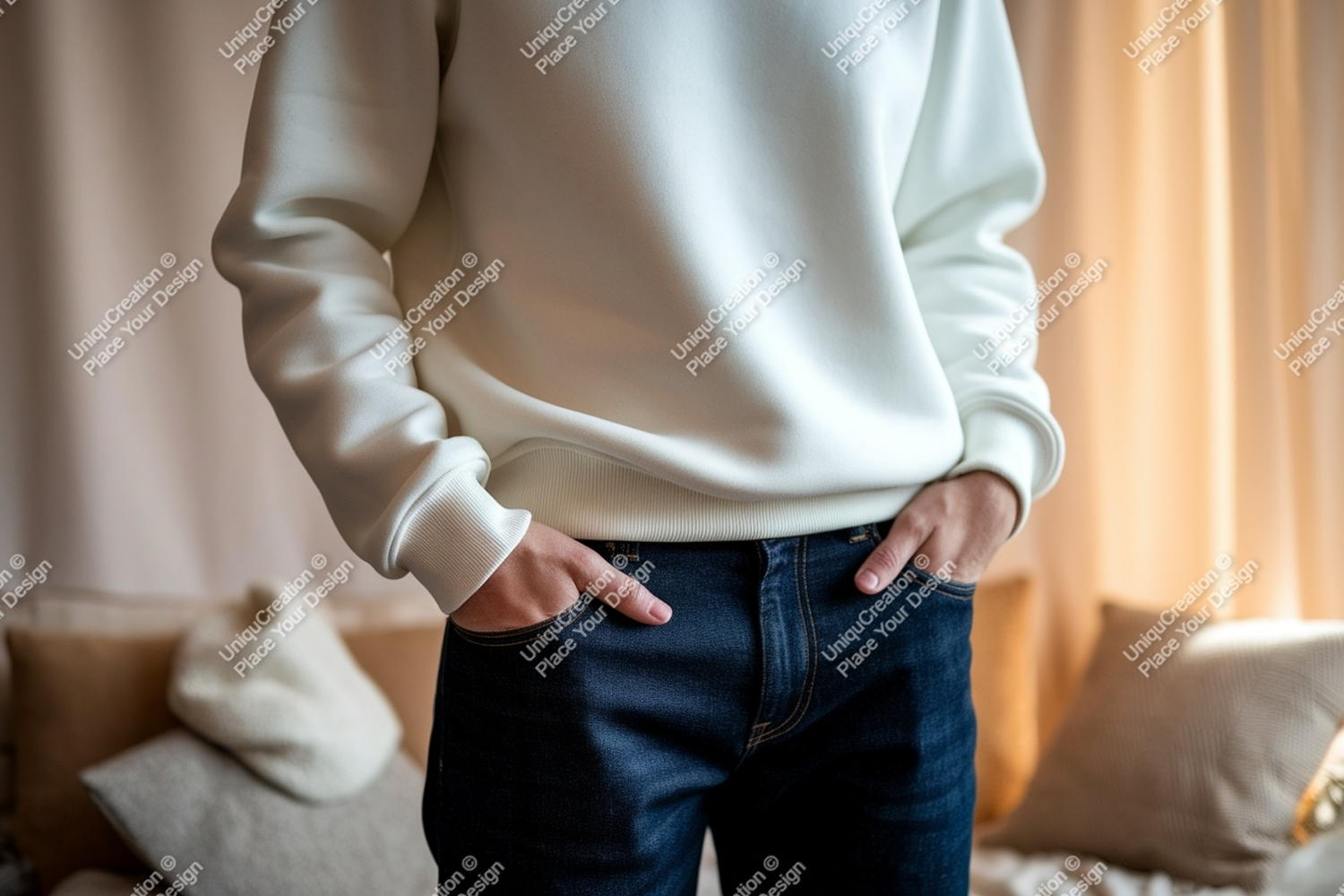 Fashion Clothing Casual Mockup Dark Wear Jeans White Comfortable Sweatshirt