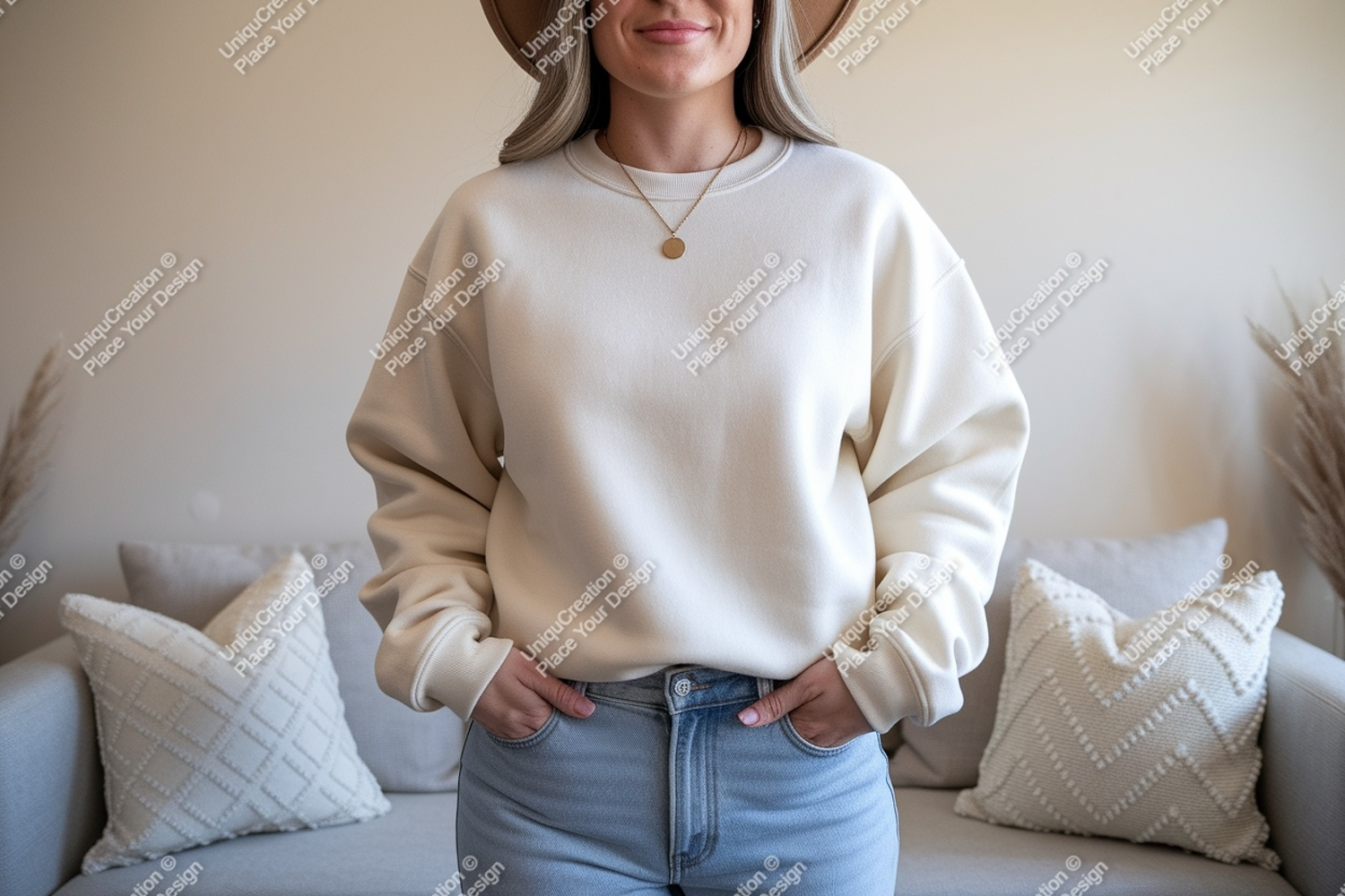 Similar Design Products to Creamy sweatshirt mockup with casual attire