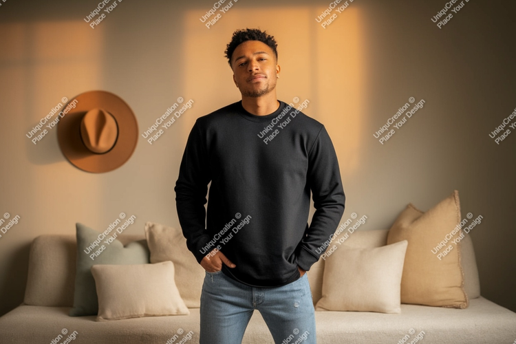 Similar Design Products to Man wearing black sweatshirt blue jeans