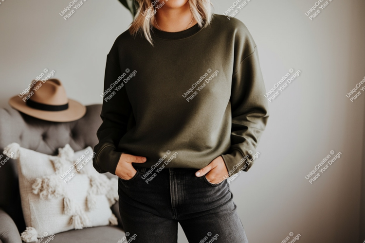 Fashion Clothing Green Mockup Apparel Dark Jeans Olive Denim Sweatshirt