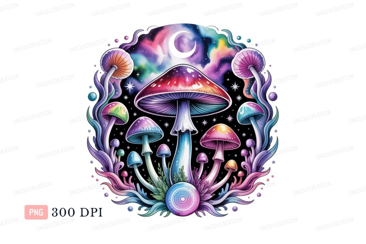 Psychedelic mushrooms cosmic crescent galaxy example image 1