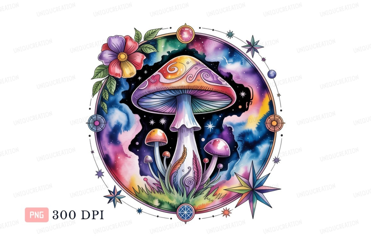 Psychedelic mushroom cosmic floral frame fantasy example image 1