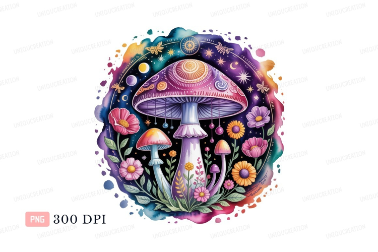 Whimsical mushroom garden celestial design flowers example image 1