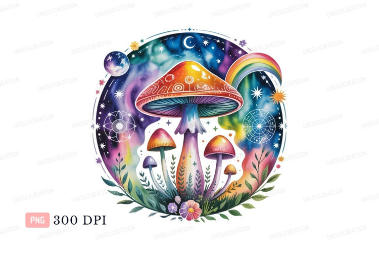 Psychedelic mushrooms celestial aurora rainbow example image 1