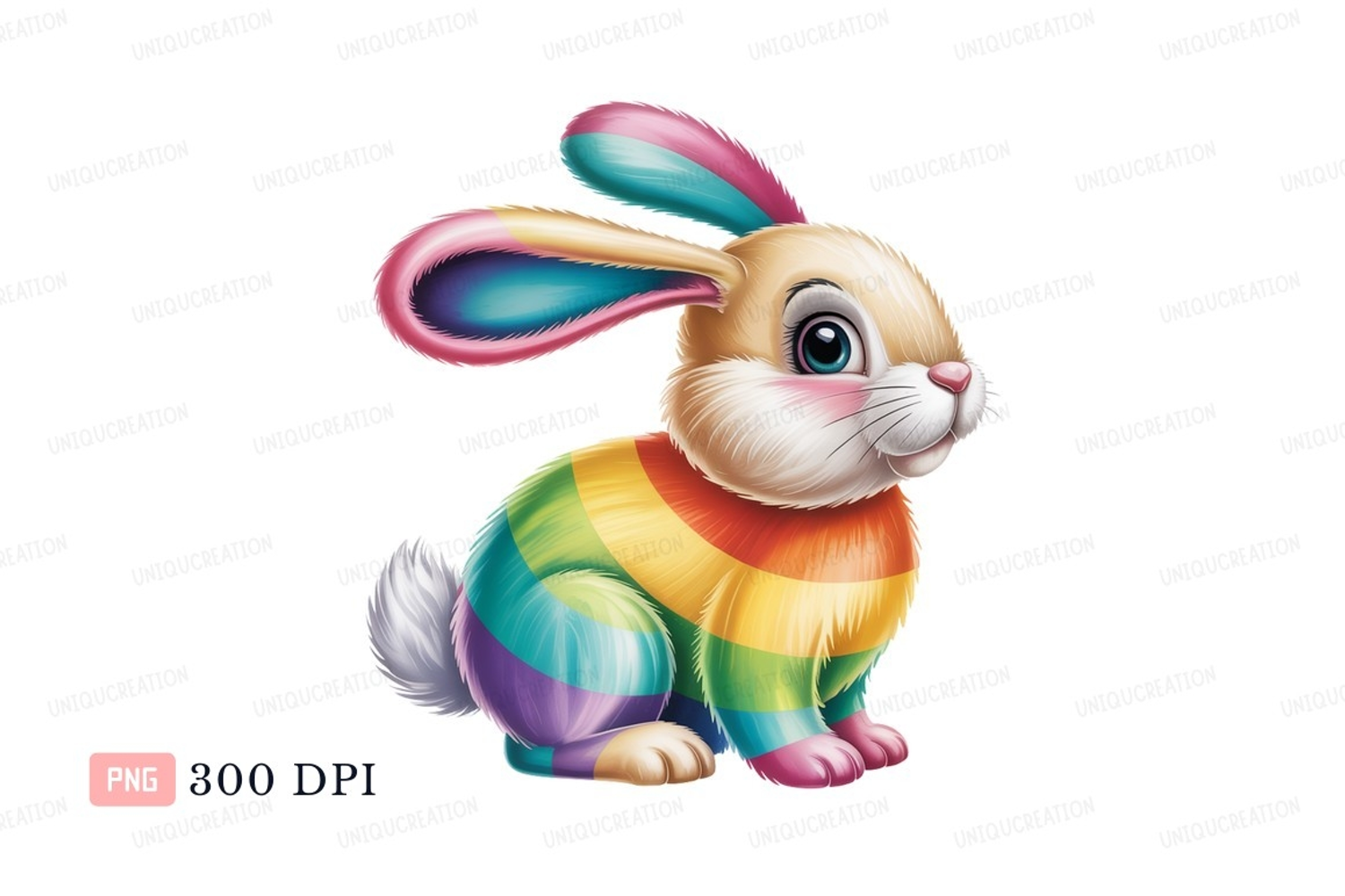 Rainbow bunny with colorful ears and striped fur rabbit example image 1