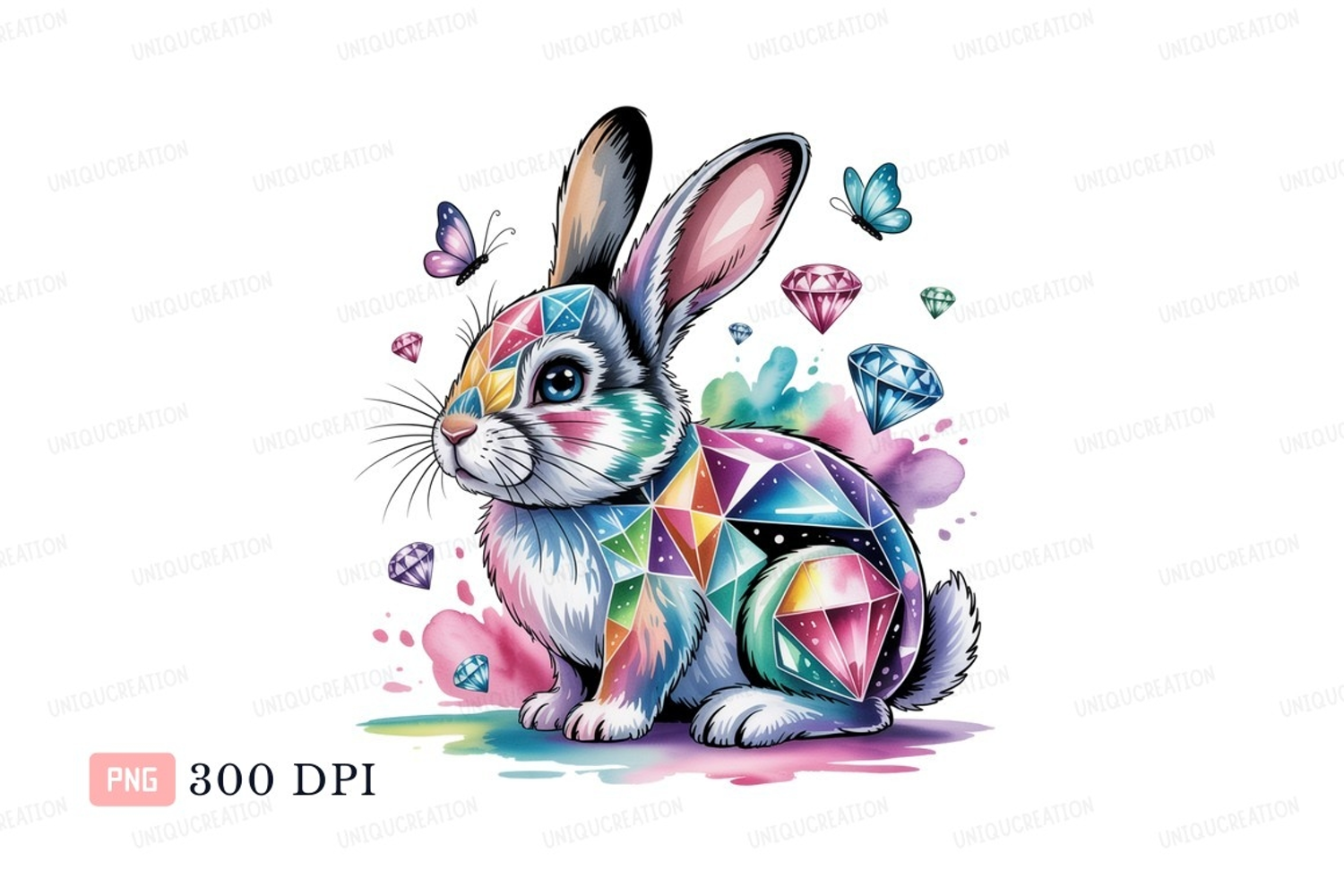 Colorful geometric bunny with diamonds rabbit crystal example image 1
