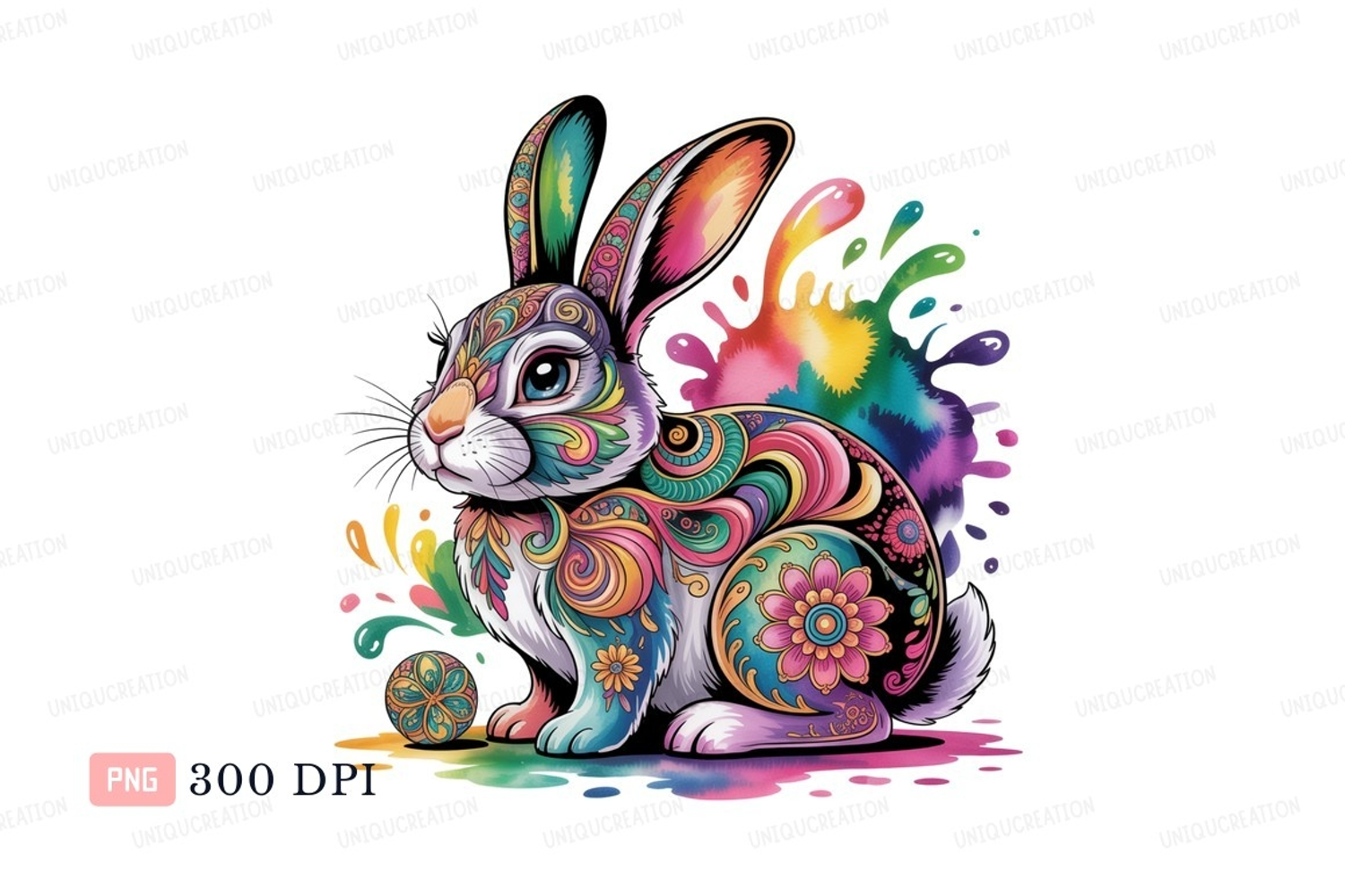 Similar Design Products to Colorful patterned rabbit with paint splashes image