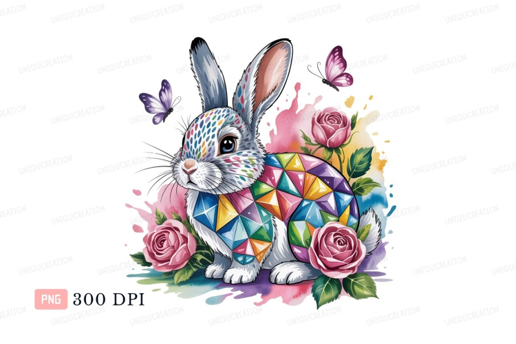 Colorful rabbit with butterflies and roses bunny butterfly example image 1