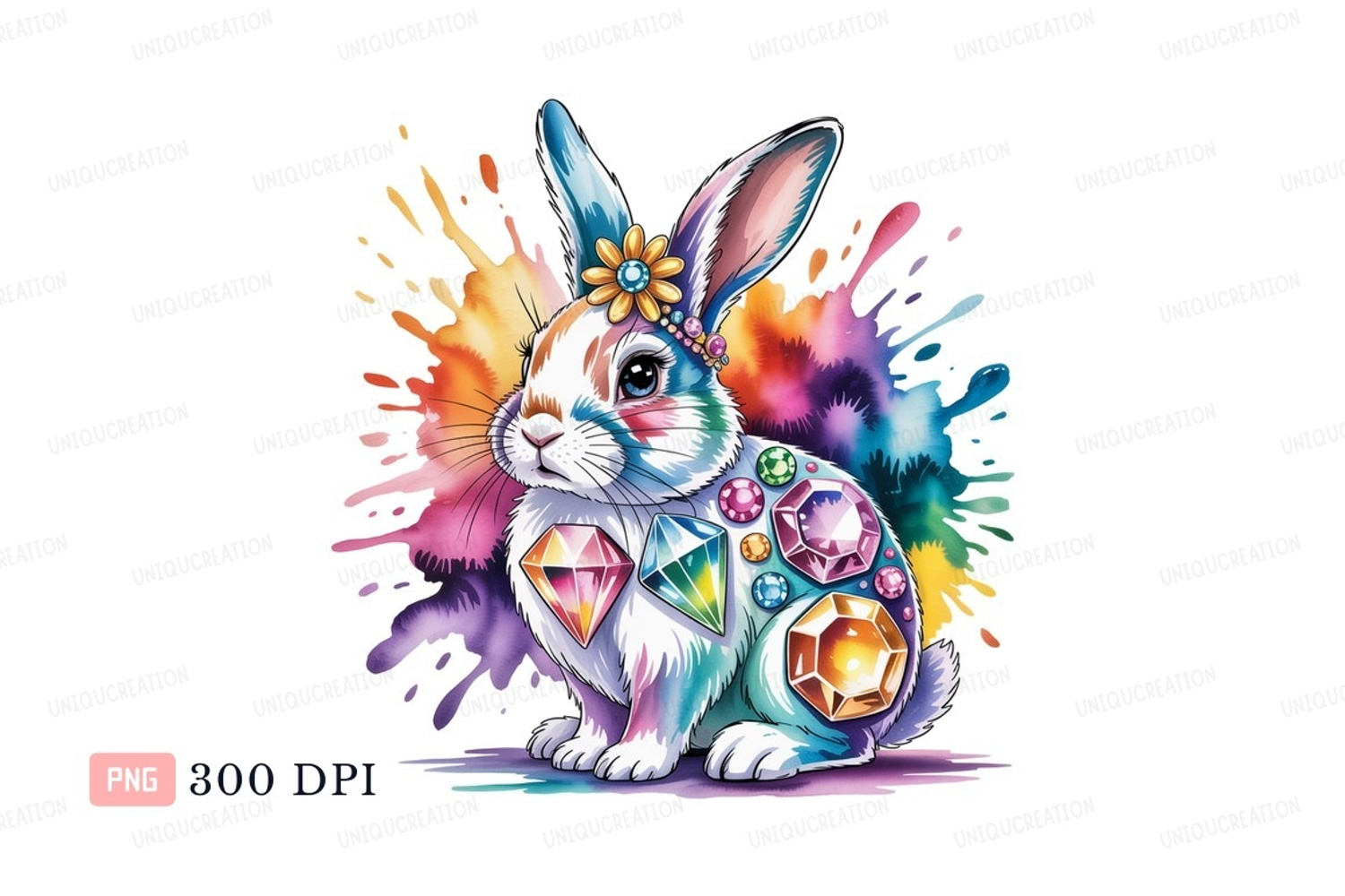Colorful jeweled rabbit with floral crown bunny gems example image 1