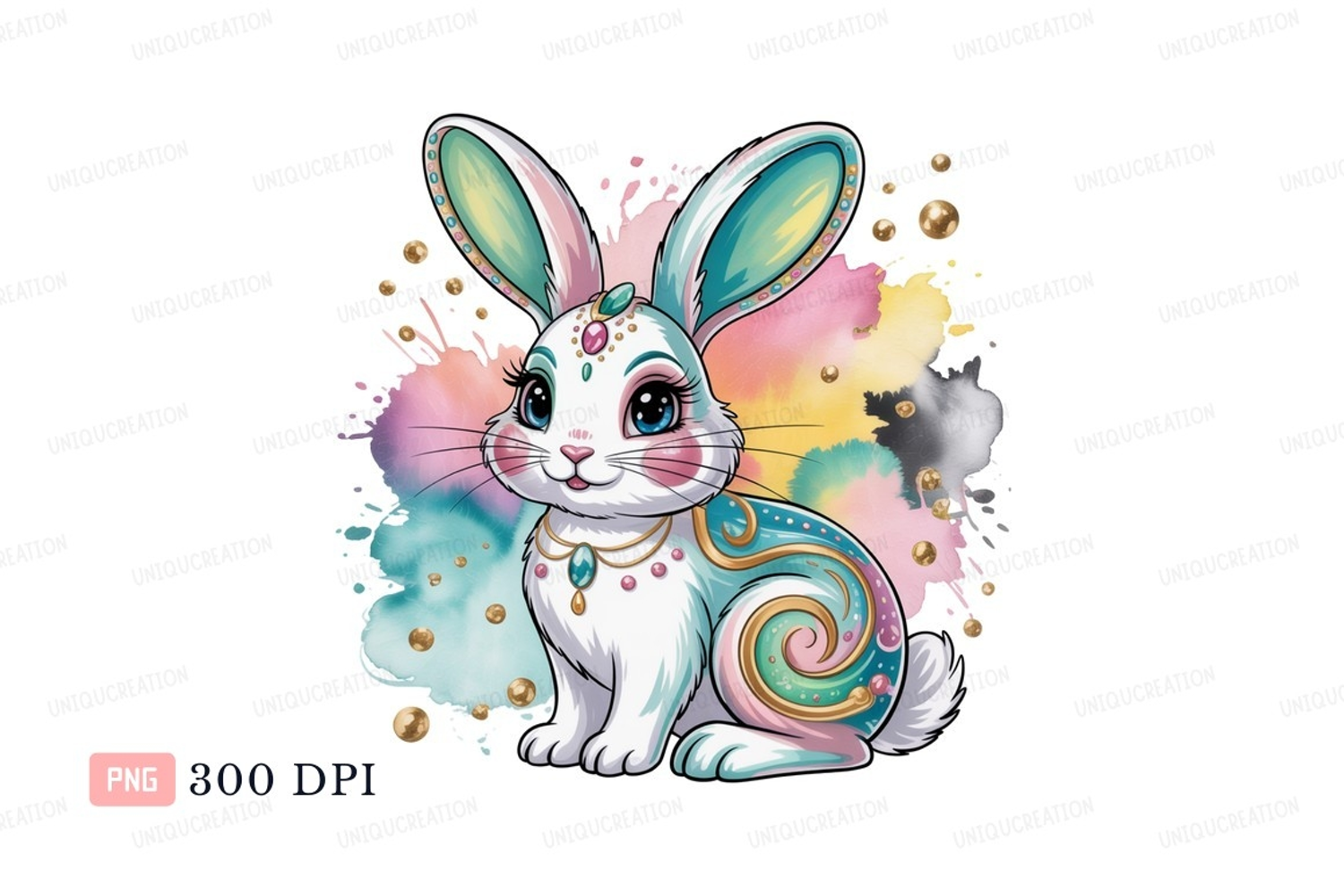 Adorned bunny with pastel splashes rabbit watercolor example image 1