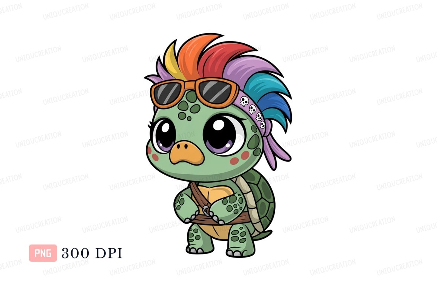 Cartoon turtle with rainbow mohawk and sunglasses animal