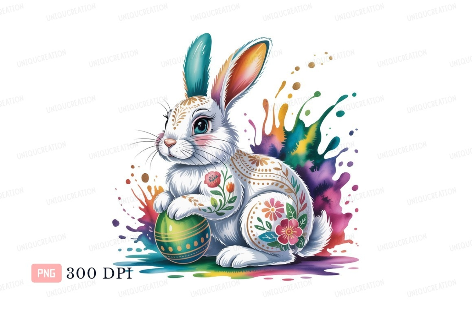 Similar Design Products to Decorated white rabbit holding easter egg green