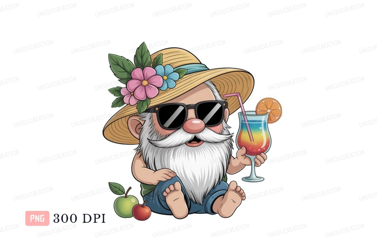 Cheerful gnome with summer drink flowers sunglasses example image 1