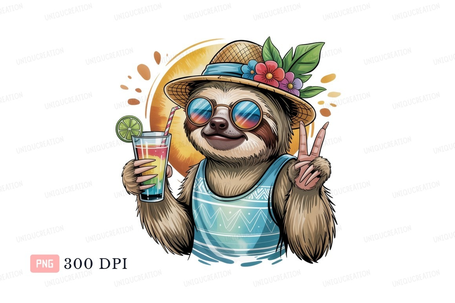 Cool sloth with drink and peace sign cocktail straw example image 1