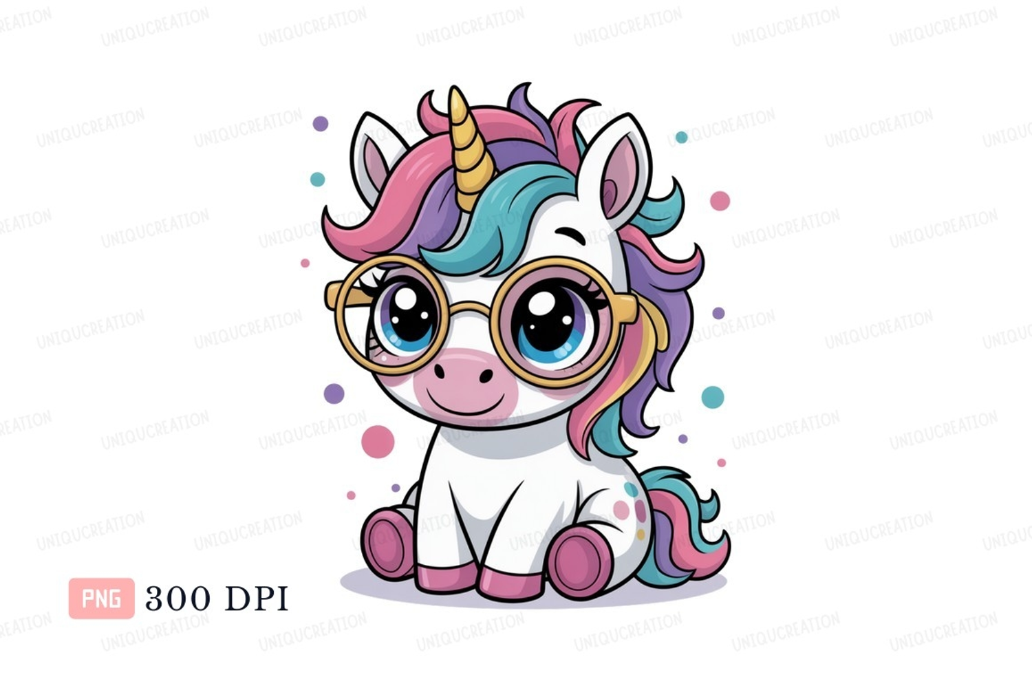 Cute unicorn with glasses and colorful mane fantasy example image 1
