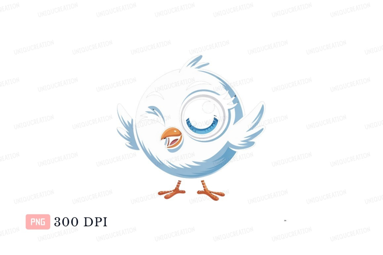Cute white chick winking bird blue example image 1