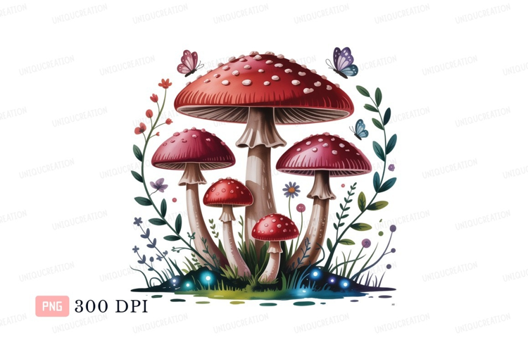 Similar Design Products to Red mushrooms with butterflies and flowers white spots