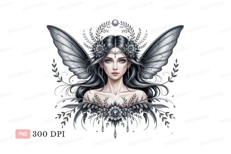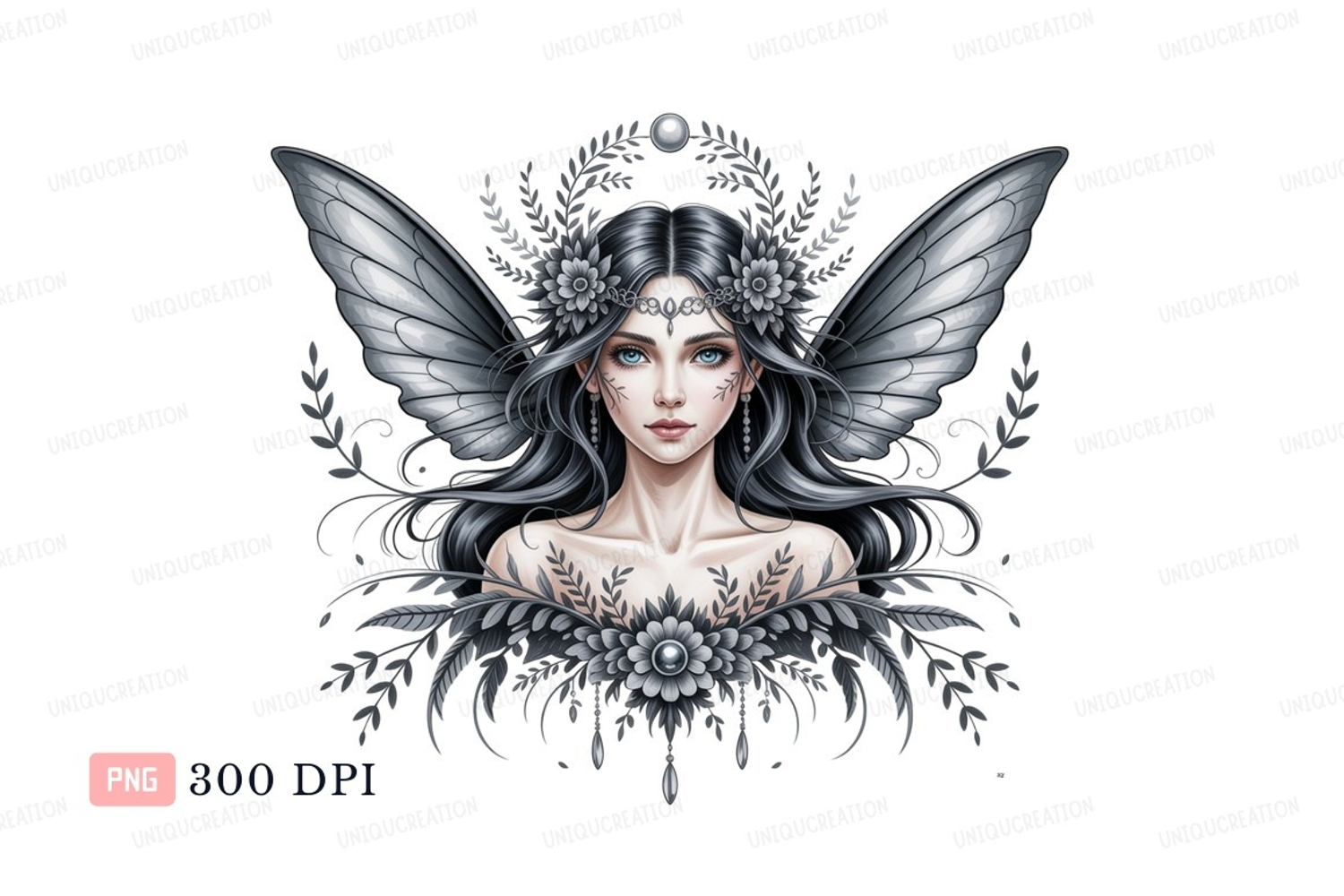 Silver winged fairy adorned with flowers wings ethereal example image 1