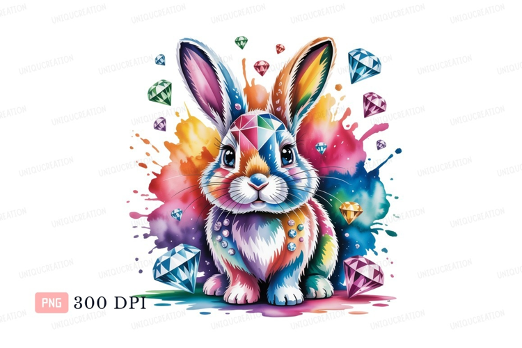 Colorful faceted rabbit surrounded by diamonds bunny example image 1