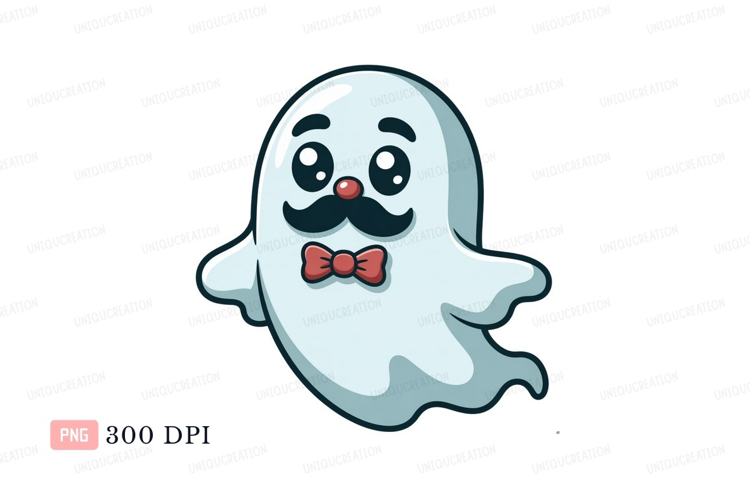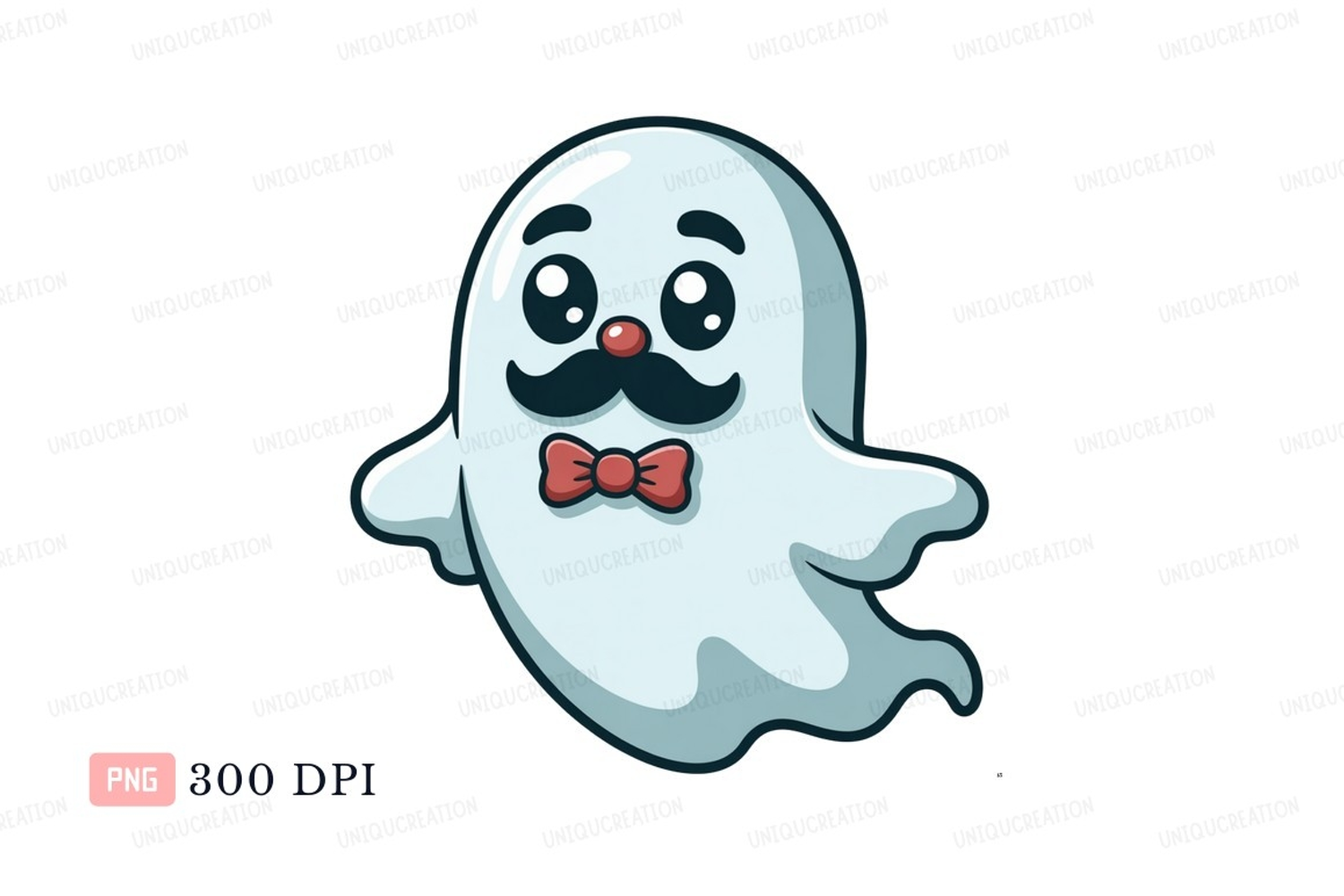 Dapper ghost with mustache and bow tie halloween cartoon example image 1