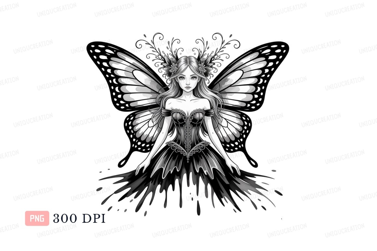Elegant fairy with butterfly wings and ornate dress example image 1