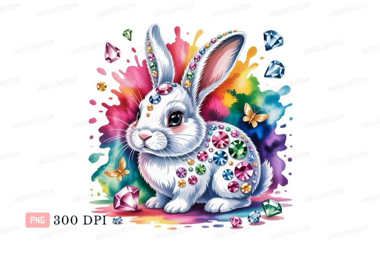 Similar Design Products to White rabbit adorned with colorful gems butterflies