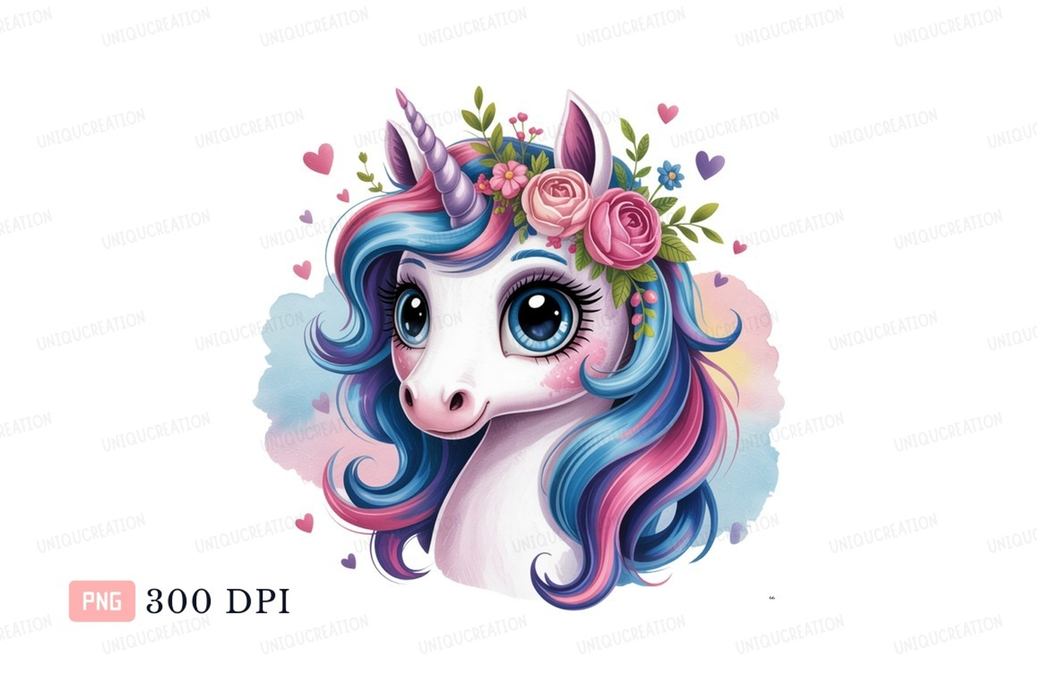 Whimsical unicorn with floral crown fantasy magical example image 1